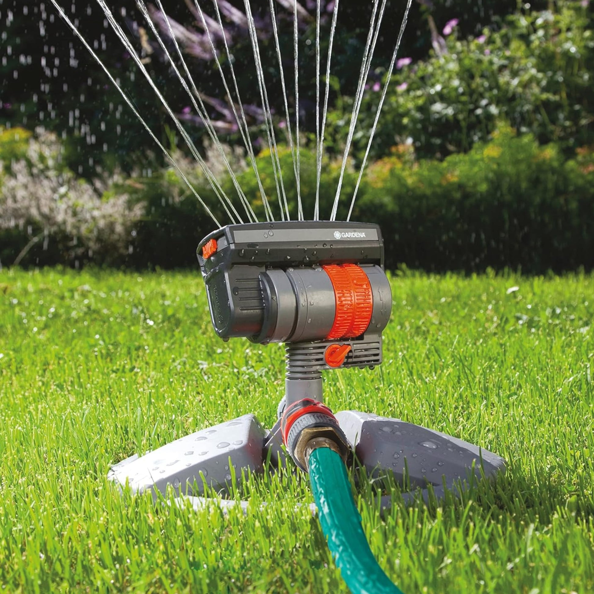 Arroseur Oscillant AQUAZOOM COMPACT GARDENA pour un arrosage précis et uniforme de surfaces rectangulaires.