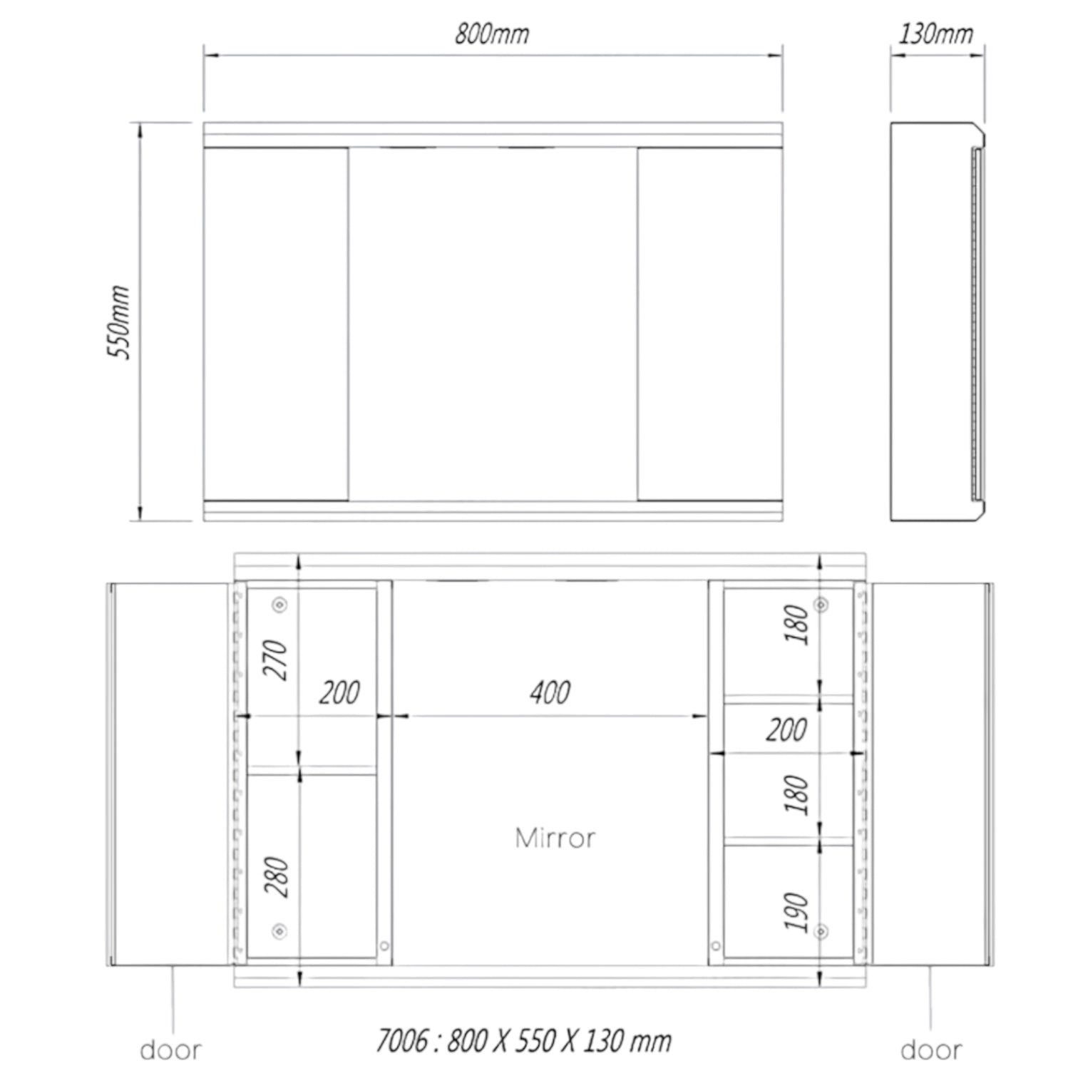 - Dimensions généreuses : 800mm (L) × 550mm (H) × 130mm (P) - Espace de rangement optimal