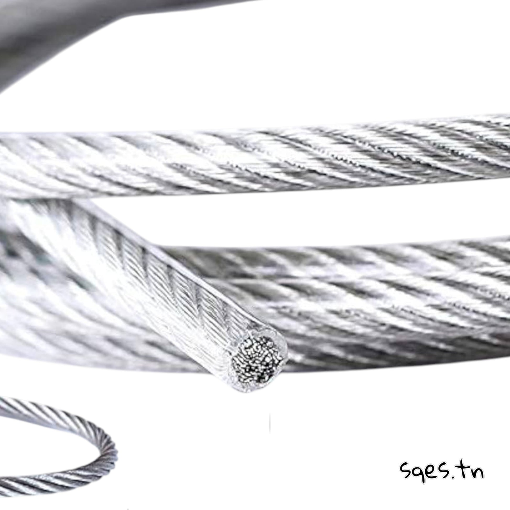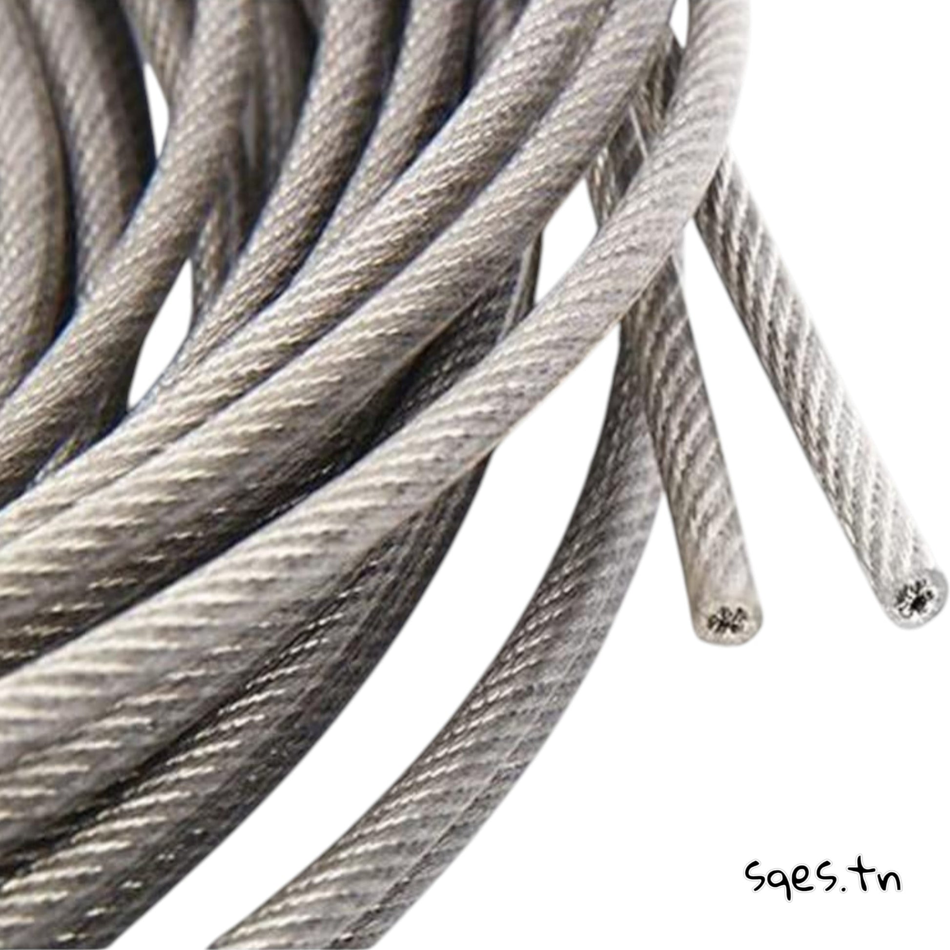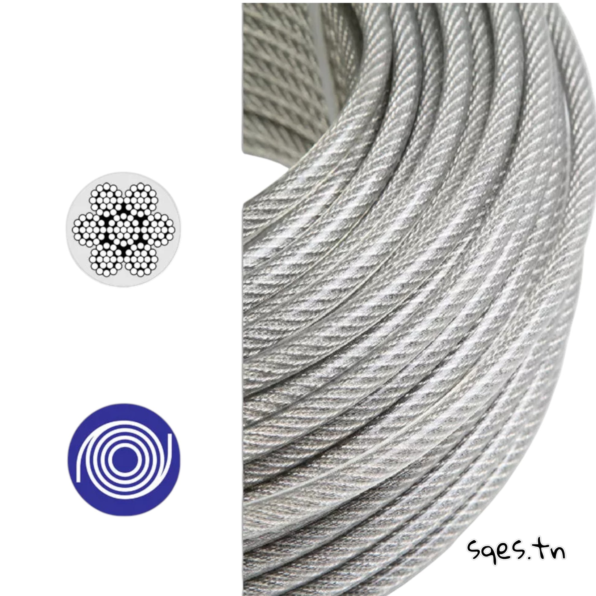 Câble métallique en acier inoxydable, gainé pour plus de durabilité. Idéal pour les applications industrielles, agricoles, nautiques ou de levage. Vendu par rouleau de 300m.