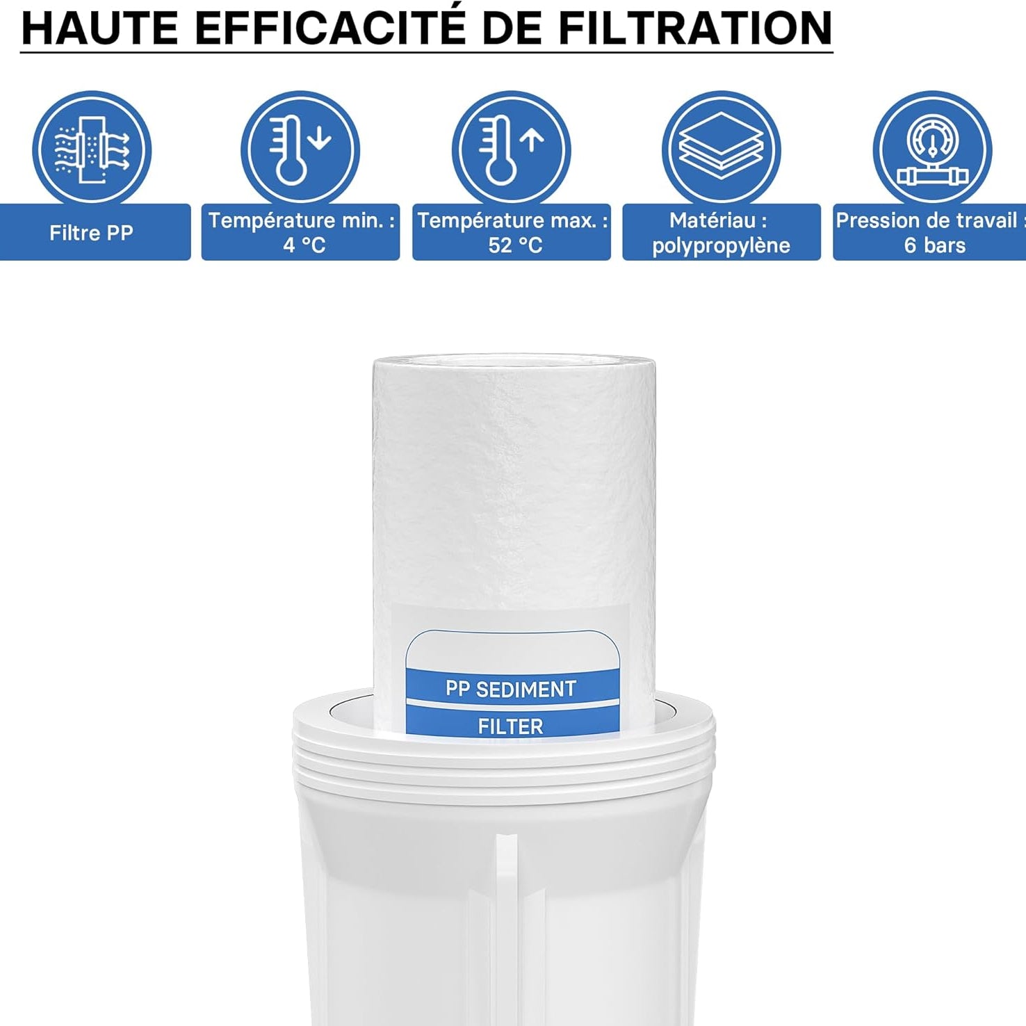 Applications : Filtration d'eau domestique et industrielle, traitement de l'eau potable, pré-filtration