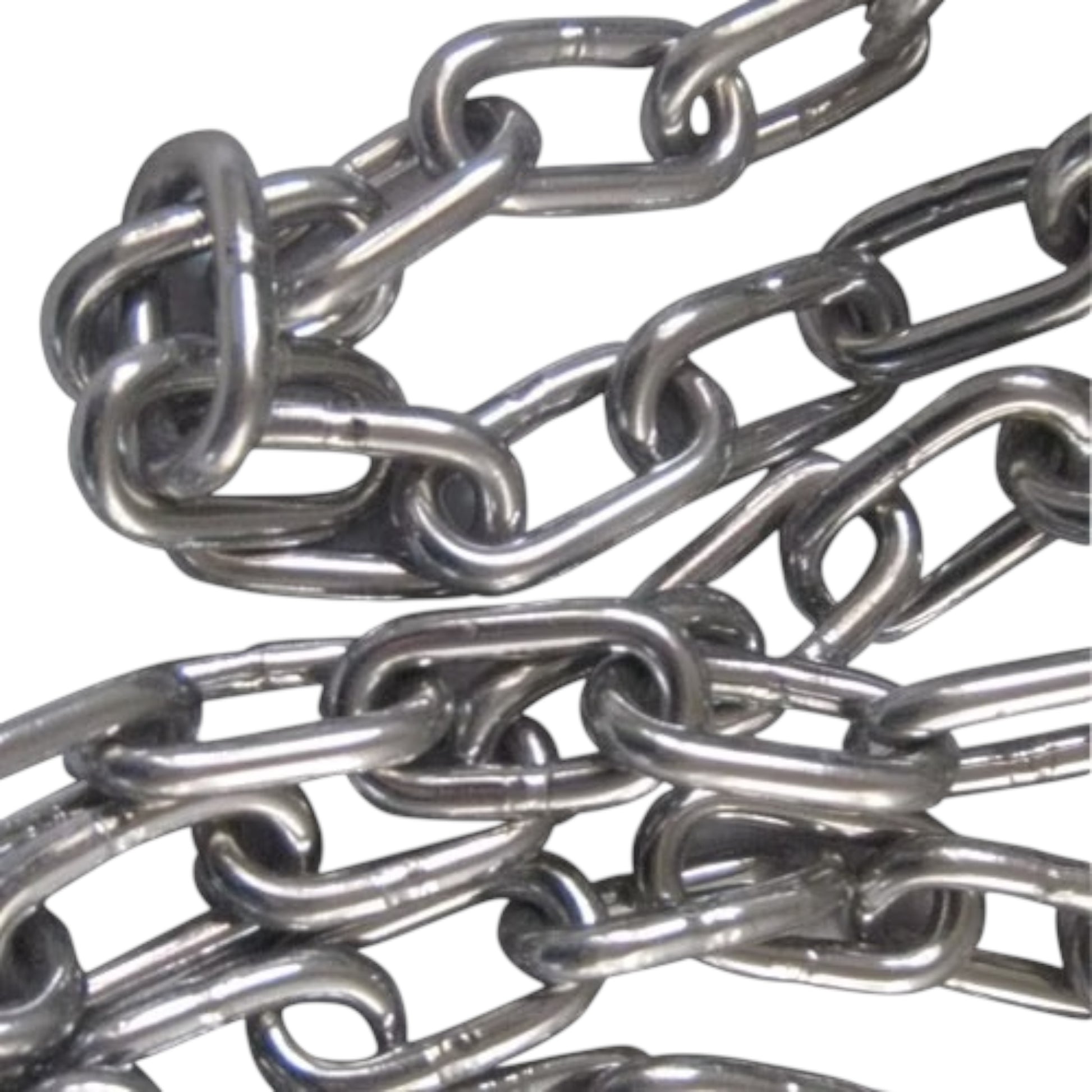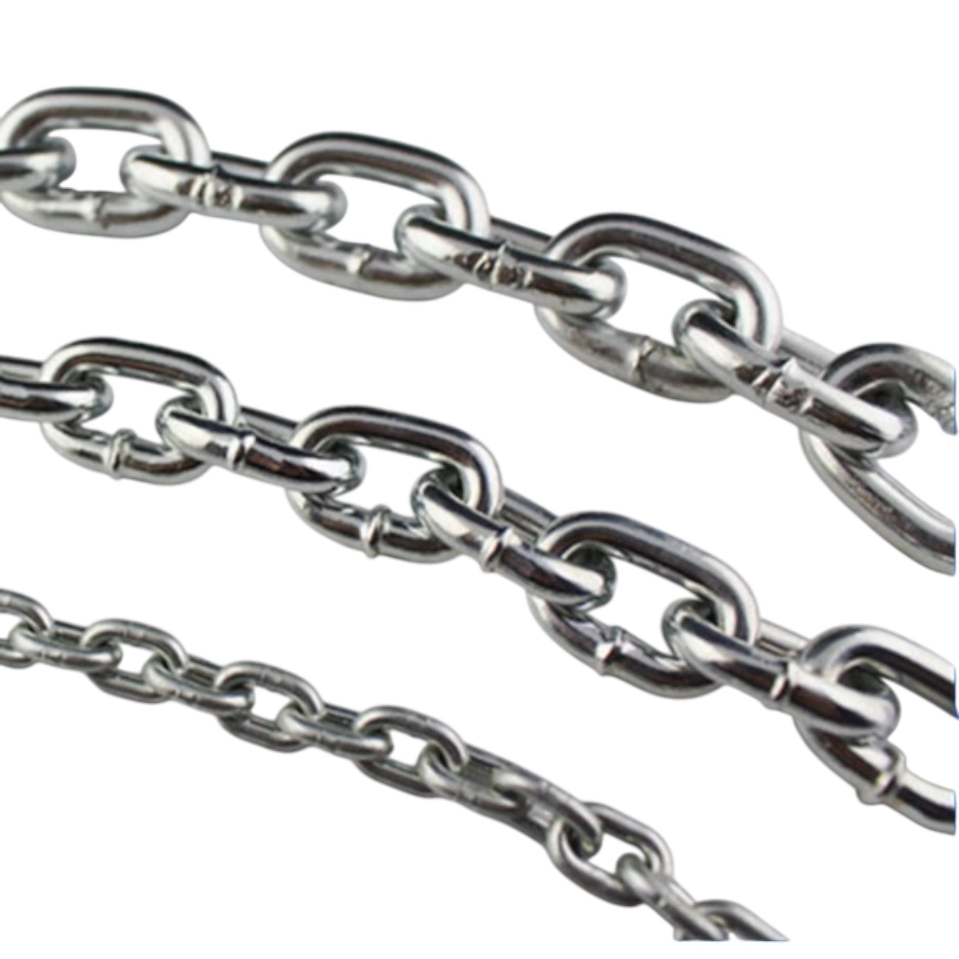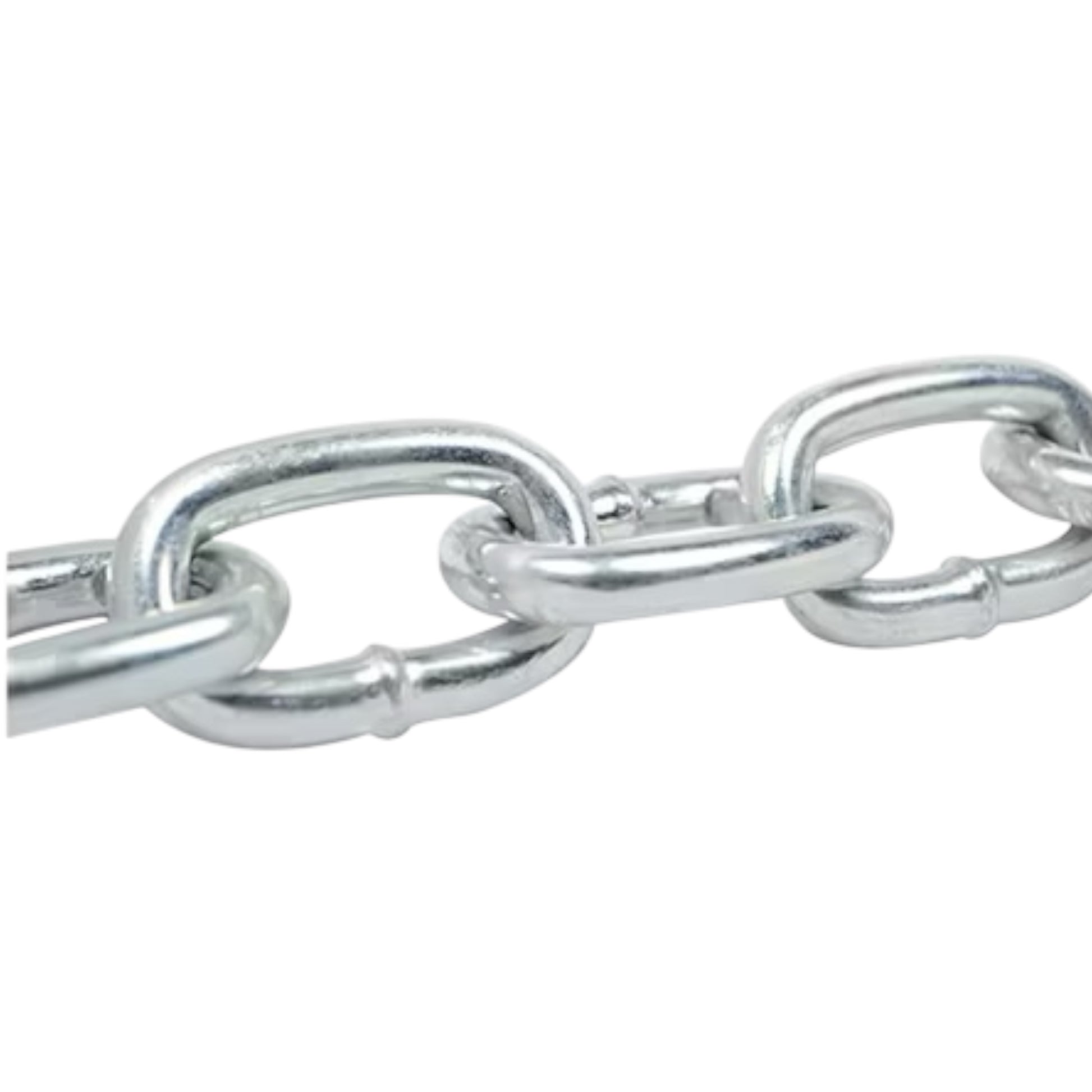 Chaîne galvanisée de haute qualité, idéale pour diverses applications de quincaillerie et de fixation. Résistante à la corrosion grâce à son traitement galvanisé.