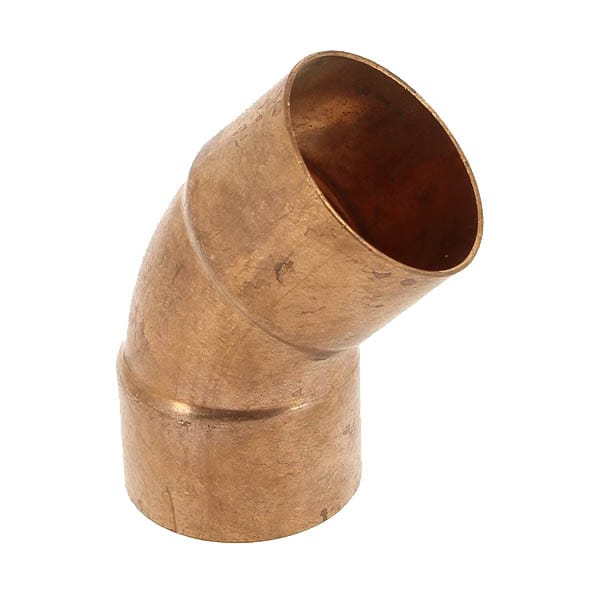 Raccord de plomberie en cuivre de haute qualité pour vos installations sanitaires et de chauffage. Ce coude à 45° de 18mm permet de réaliser des changements de direction précis dans vos canalisations.