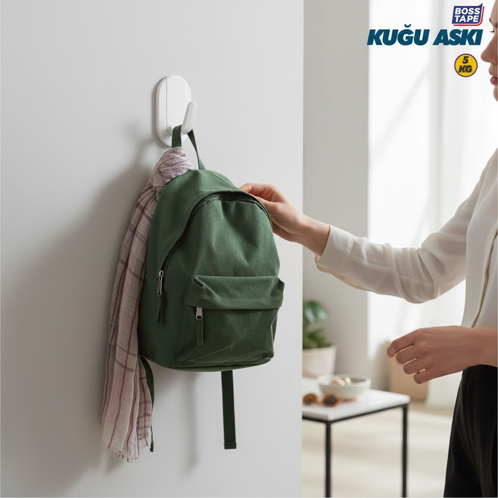 Crochet Mural BOSS TAPE Blanc 43mmx70mm (2pcs) – Sans Perçage