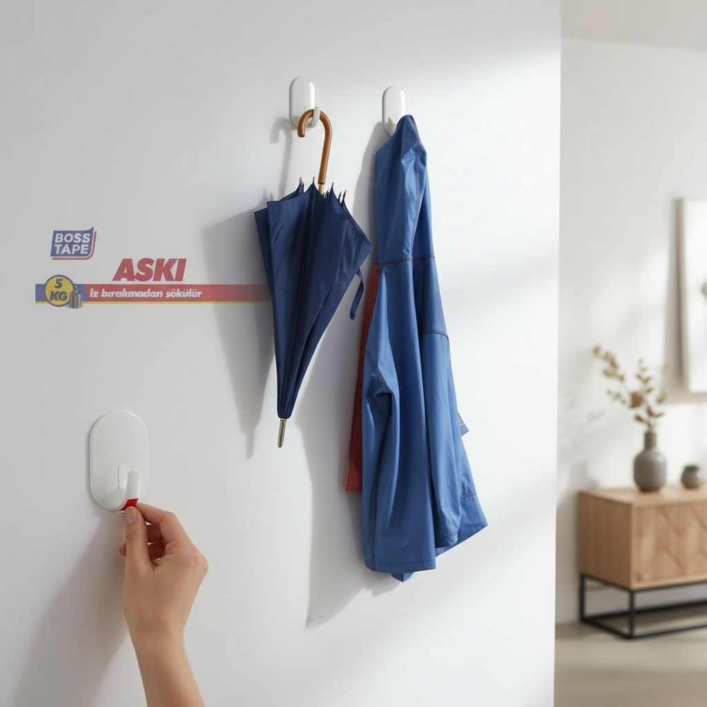 Crochet Mural BOSS TAPE Blanc 45mm – Sans Perçage