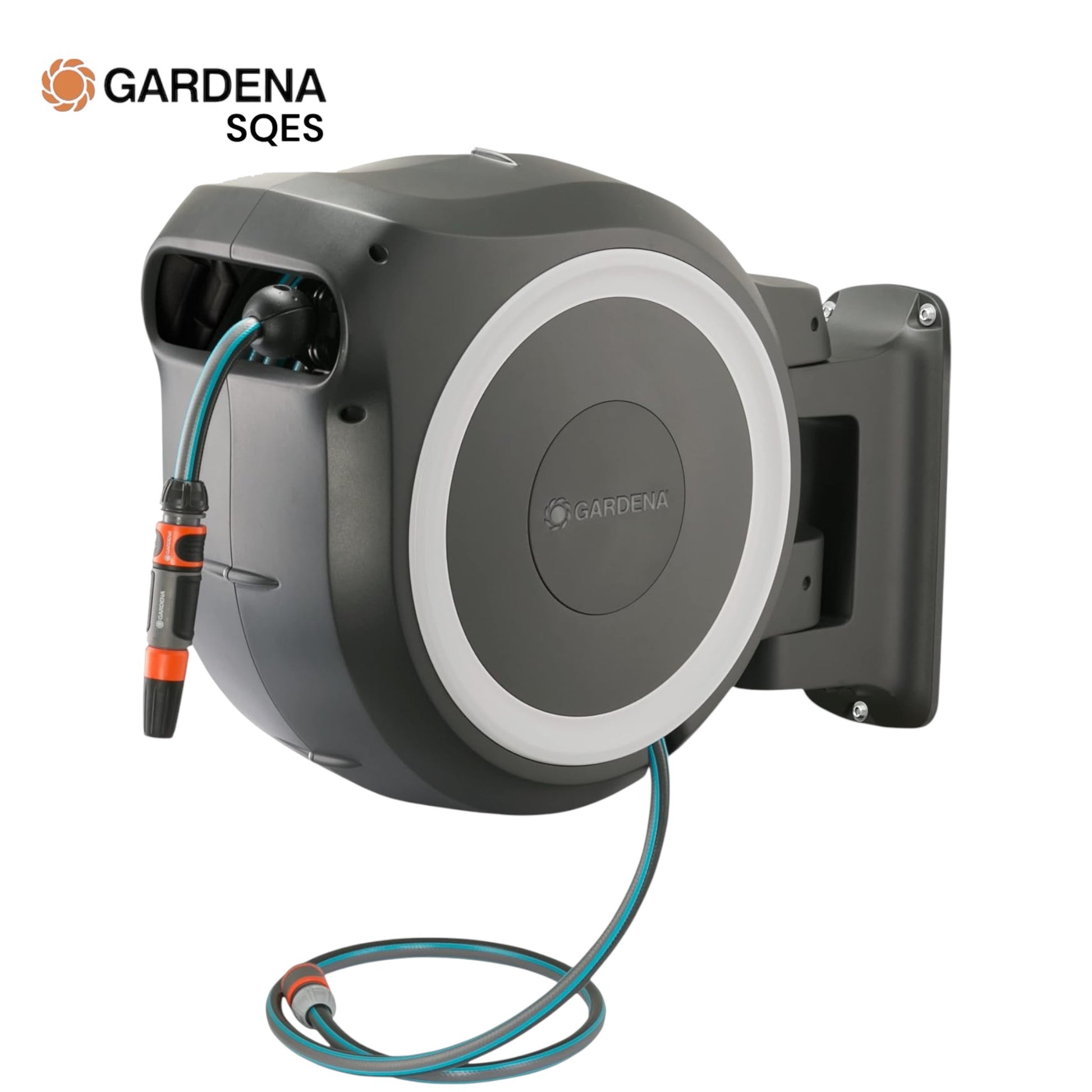 Dévidoir automatique mural grande capacité avec enroulement automatique du tuyau. Idéal pour les grands jardins. Le système RollUp assure un rangement propre et pratique de votre tuyau d'arrosage de 35 mètres.