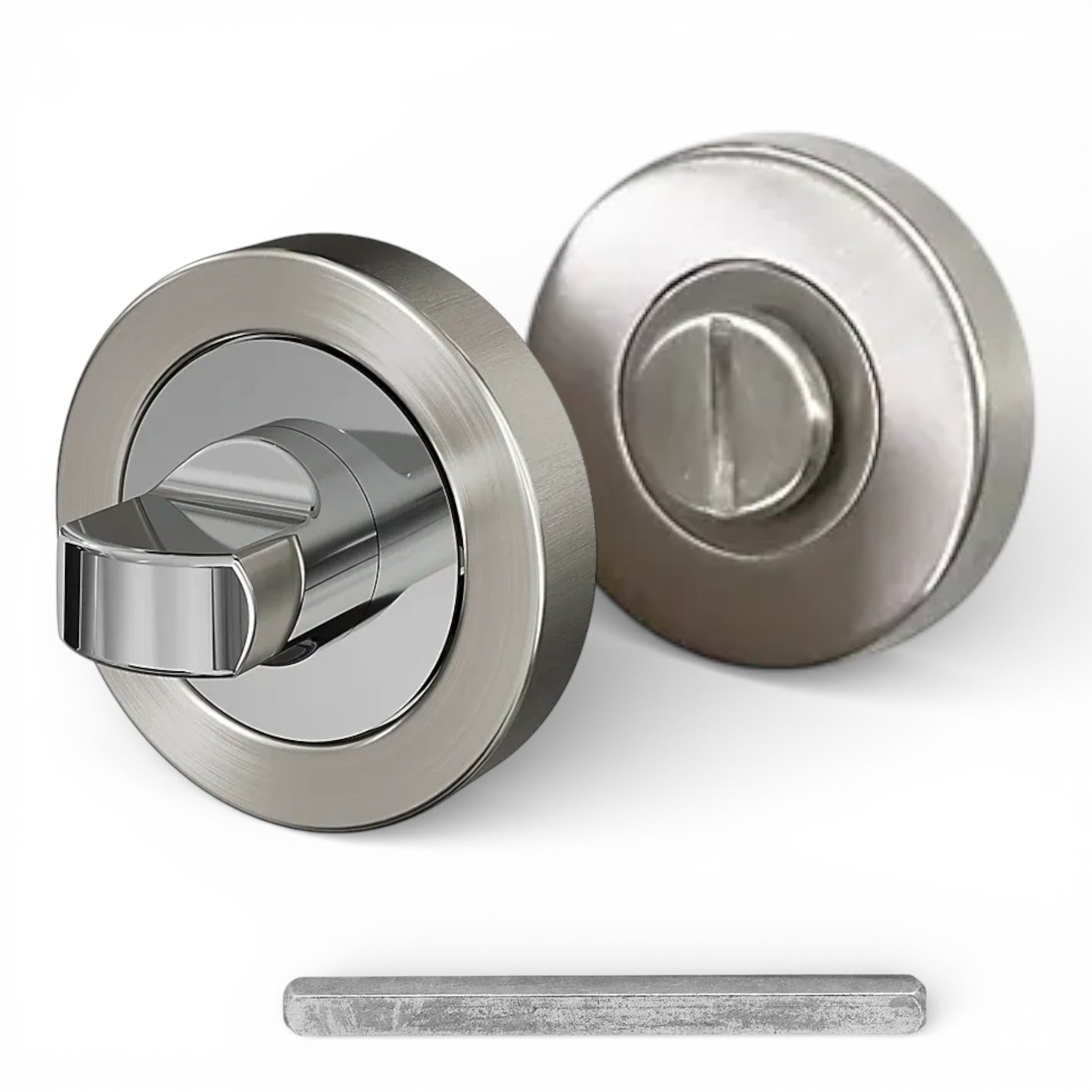 Ensemble de rosaces rondes à condamnation satiné - Finition élégante avec système de verrouillage pour vos portes.