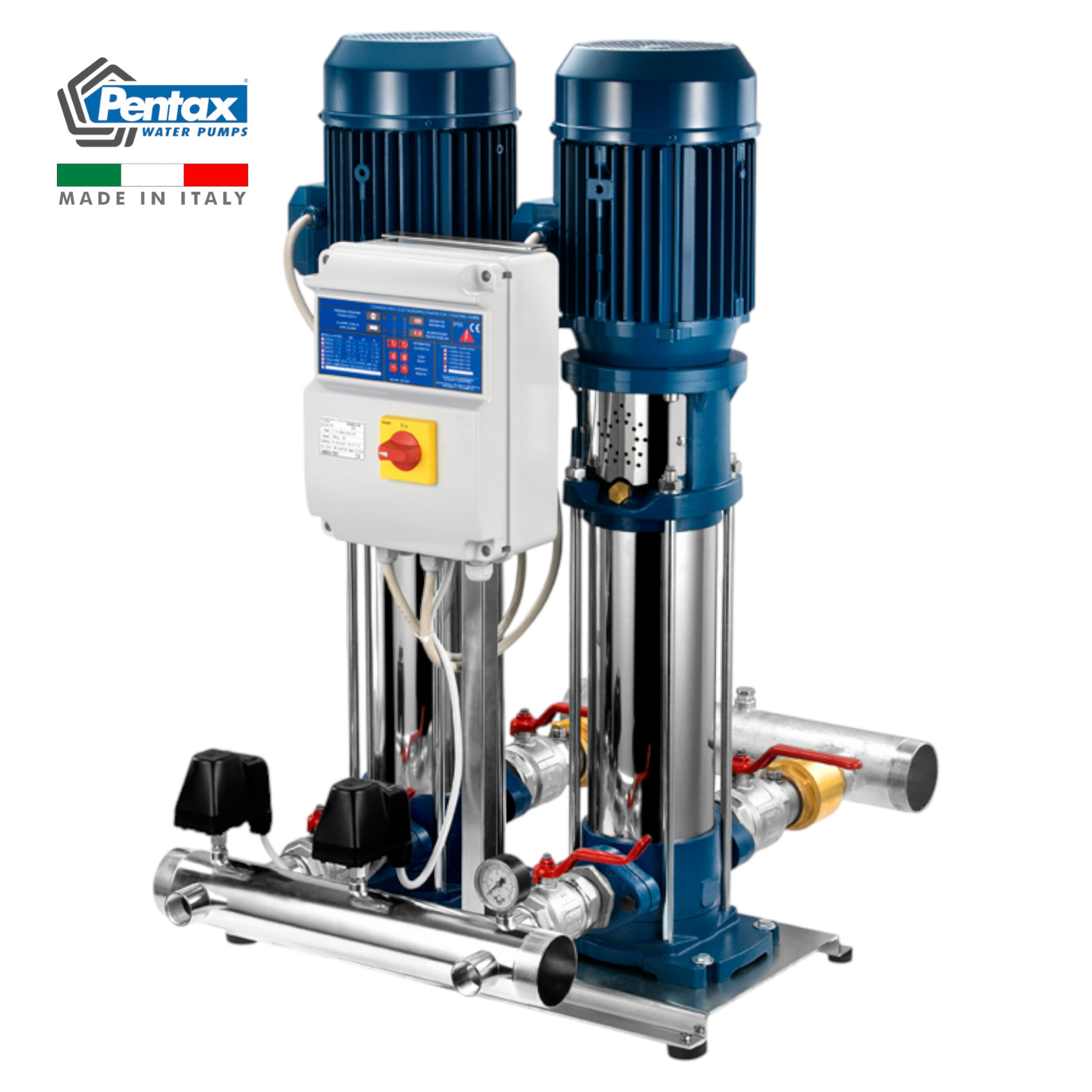 Groupe de surpression PENTAX 2U5SL-200/7 - Système automatique à vitesse fixe composé de 2 pompes. Idéal pour applications industrielles et résidentielles.