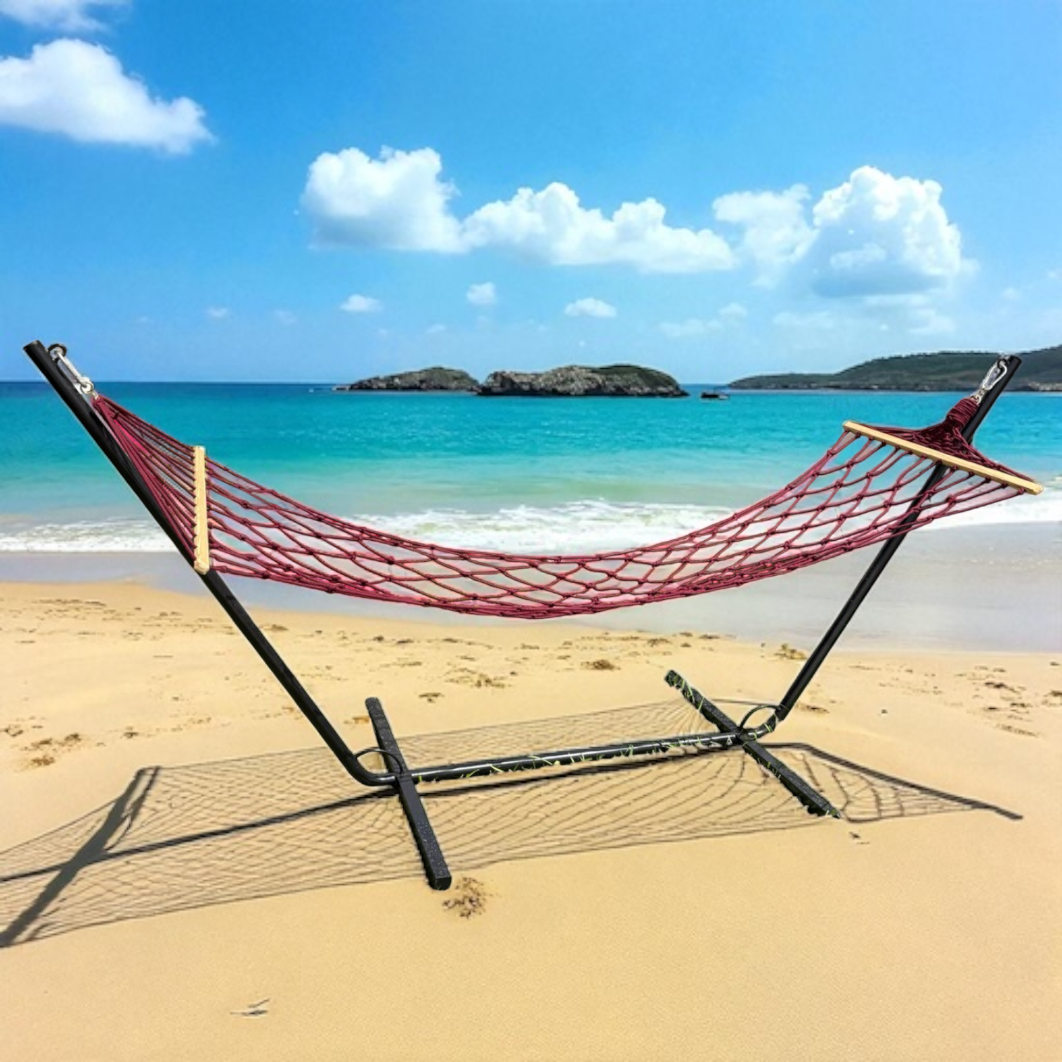 Profitez de moments de détente absolue avec notre hamac de qualité supérieure. Conçu pour offrir un confort optimal, ce hamac est parfait pour votre jardin, terrasse ou balcon.