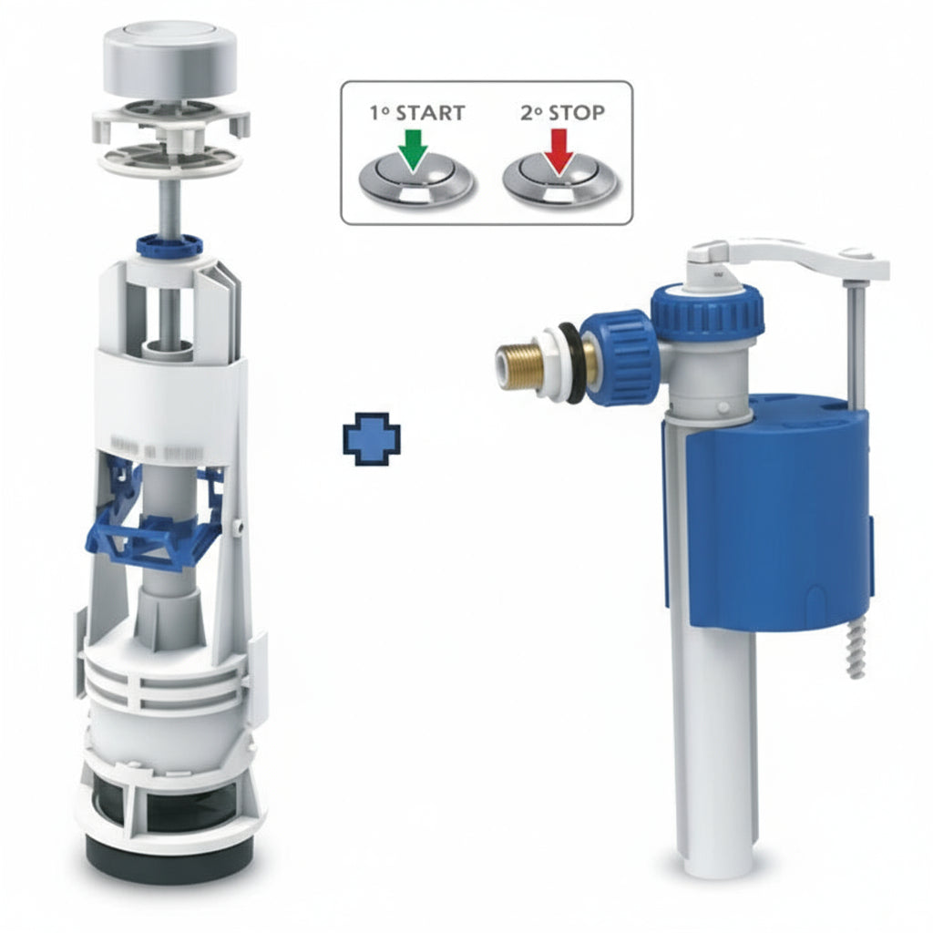 - 1 x Mécanisme de chasse complet avec bouton poussoir