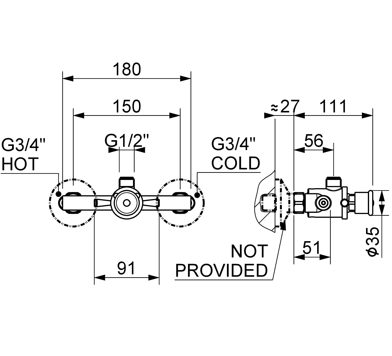 Installation murale professionnelle avec raccordement par bouchon rotatif G 3/4" garantissant une étanchéité parfaite. Le système anti-vandalisme assure une longévité exceptionnelle même dans les environnements à forte sollicitation. Réglages de température et de débit facilement accessibles pour une maintenance optimale.