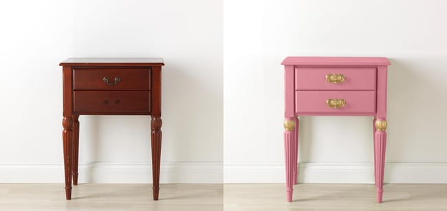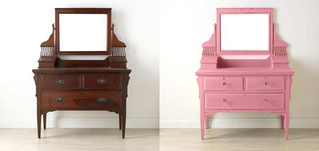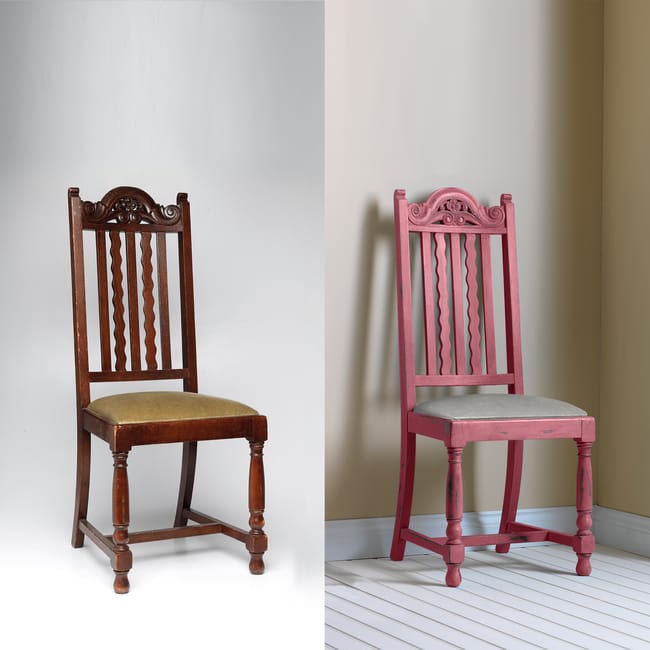 Peinture patinage pour meubles Rust-Oleum Chalky Finish de Bruguer , blanc antique avec un fini crayeux exceptionnel.