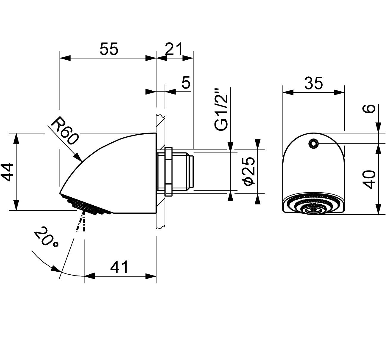 Installation murale simple avec raccordement standard G 1/2". Le système anti-accrochage garantit une utilisation sûre dans tous les environnements. La finition chromée facilite l'entretien quotidien et assure une longévité maximale.