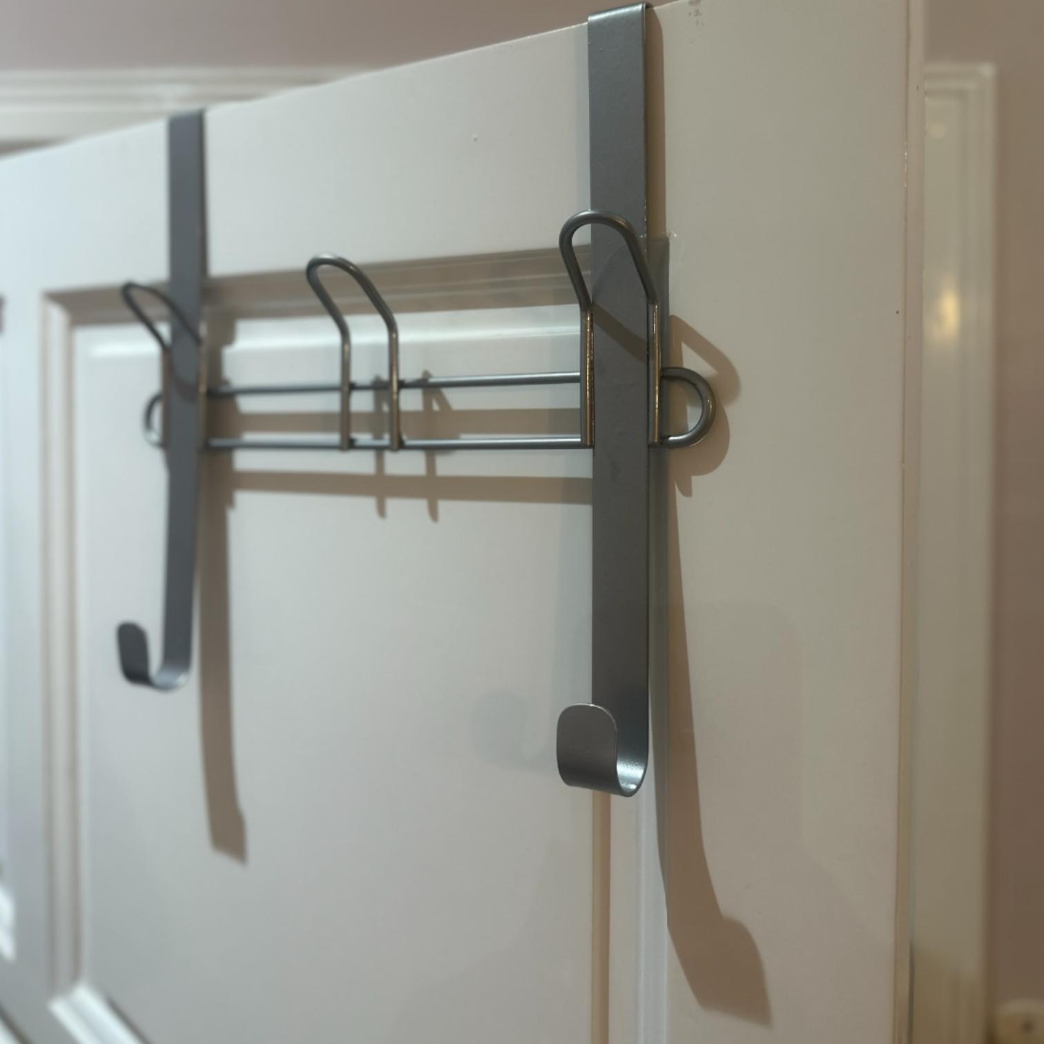Ajoutez du rangement pratique à votre salle de bain ou WC avec ce porte-serviettes blanc à 5 crochets, à fixation sans perçage. Il s’accroche facilement au-dessus de la porte, sans vis ni outils.