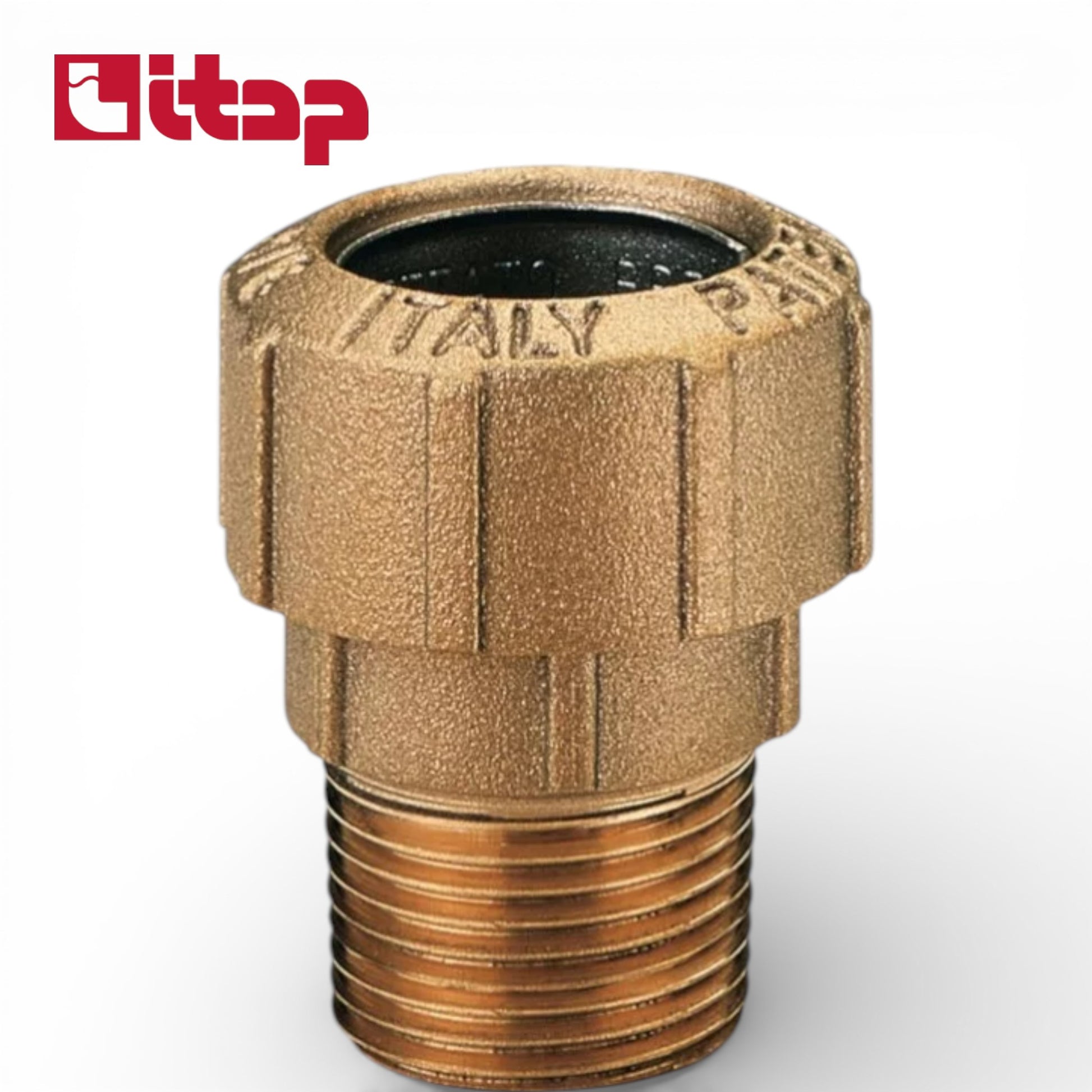 Raccord droit mâle ITAP en laiton pour tubes polyéthylène - Connexion robuste et fiable pour installations hydrauliques, chauffage et climatisation. Laiton haute qualité avec filetage ISO 228. Disponible en plusieurs diamètres (25M, 32M, 40M).