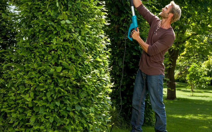 La tête du taille-haie se plie facilement pour positionner la lame correctement. Vous pouvez ainsi tailler le haut de votre haie avec précision et facilité, sans avoir à monter sur une échelle. Ajustez l'angle selon vos besoins pour atteindre toutes les zones de votre haie.