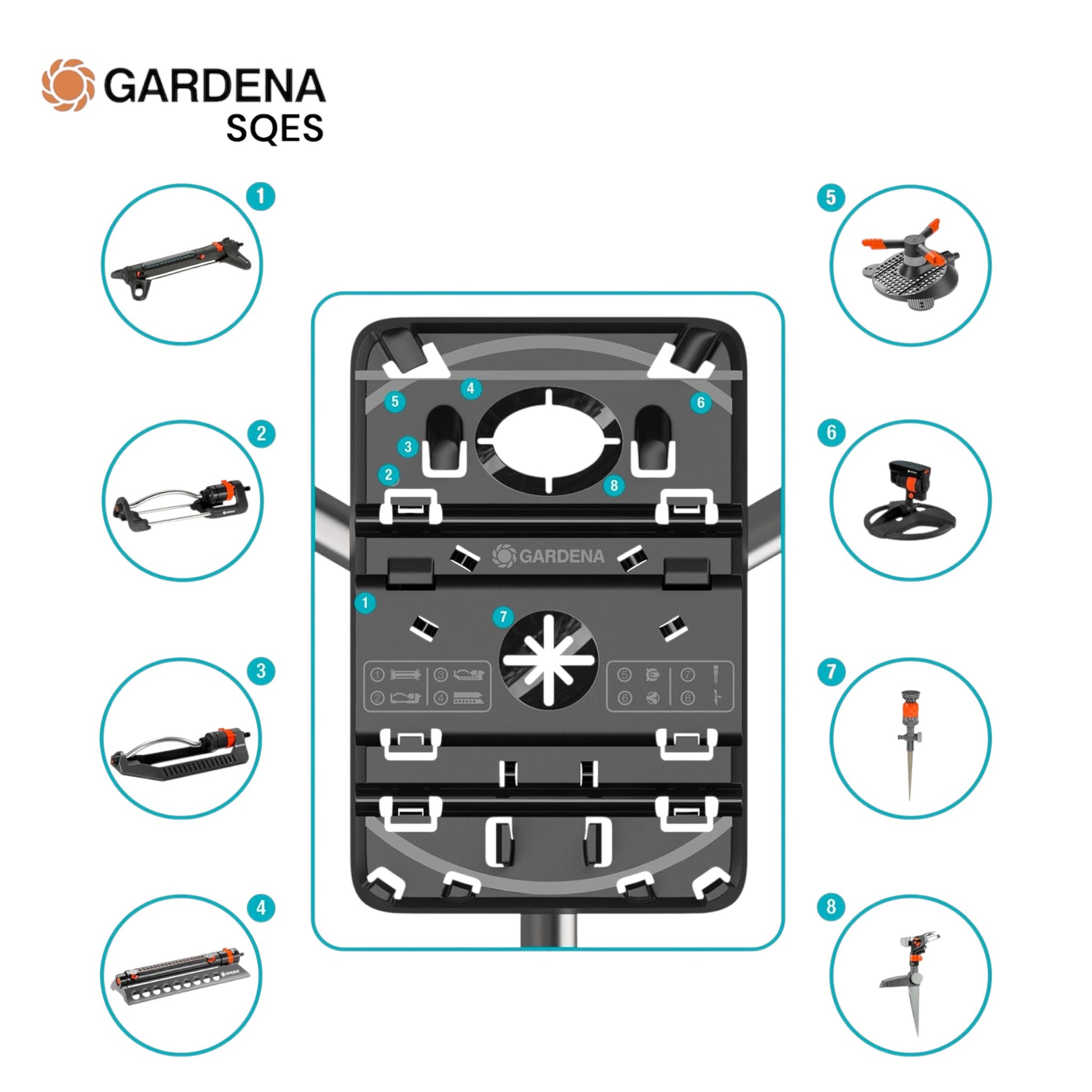 Caractéristiques : Hauteur réglable, construction métallique robuste, pieds antidérapants, compatible tous arroseurs GARDENA, montage rapide, stable sur tous terrains.