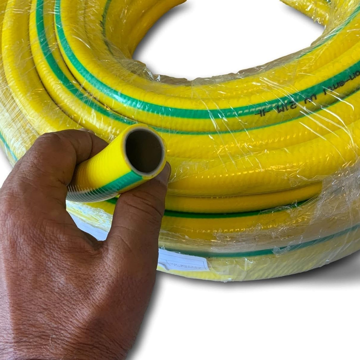 Tuyau de jardin professionnel de 19mm de diamètre et 50 mètres de longueur, idéal pour l'arrosage de jardins, espaces verts et applications domestiques. Fabriqué avec des matériaux de haute qualité garantissant durabilité et résistance.