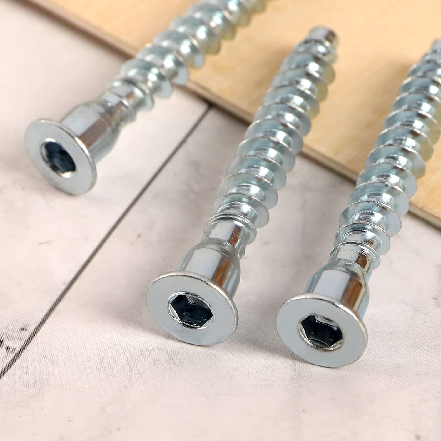 Vis d'assemblage 5x50mm à bout plat, renforcé, avec tête hexagonale. Idéale pour le montage de meubles en bois, MDF ou aggloméré. Sa longueur de 50 mm garantit une fixation solide et profonde, sans abîmer le matériau. Résistante à la corrosion, parfaite pour une utilisation durable.